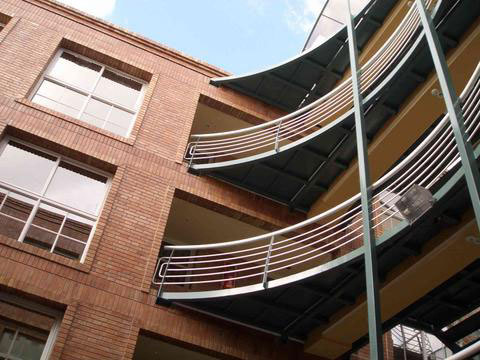 Vista de los puentes curvos, de acceso a los departamentos.