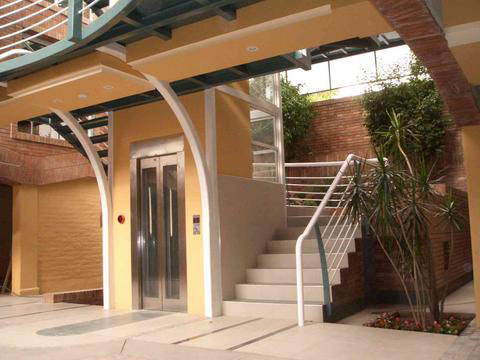Desde Planta Baja, acceso a las circulaciones verticales, rodeadas por jardines.